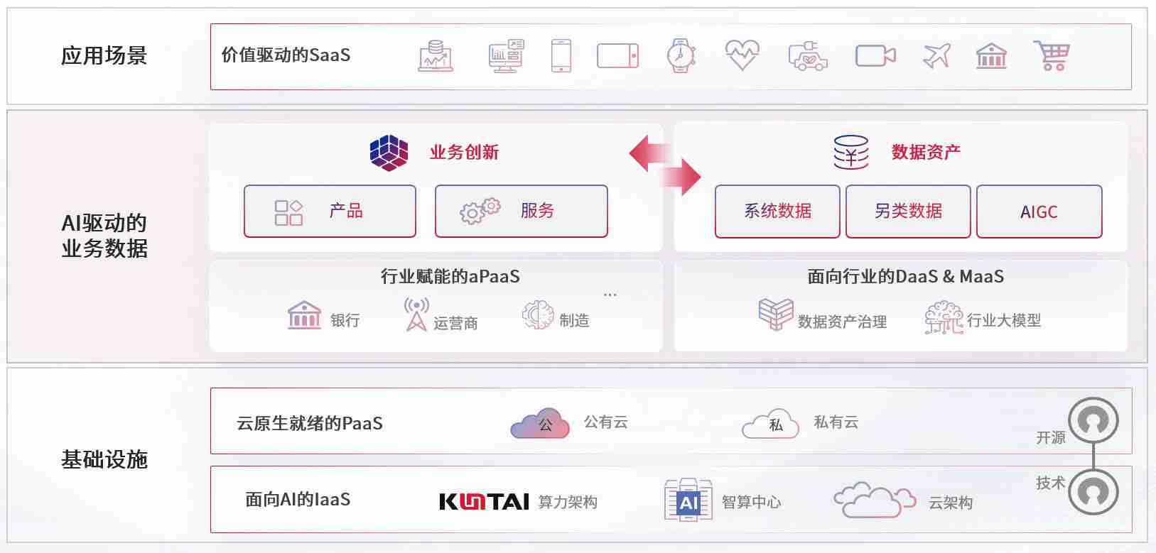数字时代,,,,围绕企业数字化转型的关键要素,,,意昂2数码开创性的提出数云融合战略和技术体系框架,,,着力在云原生、、、、数字原生、、、AI原生和信创产业上架构产品和服务能力,,,,为处在不同数字化转型阶段的快消零售、、、汽车、、、金融、、、、医疗、、、政企、、、、教育、、运营商等行业客户提供泛在的敏捷IT能力和融合的数据驱动能力,,构建跨界融合创新的数字业务场景和新业务模式,,助力企业级客户建立面向未来的核心能力和竞争优势,,,,全面推动社会的数字化、、、、智能化转型升级。。。。