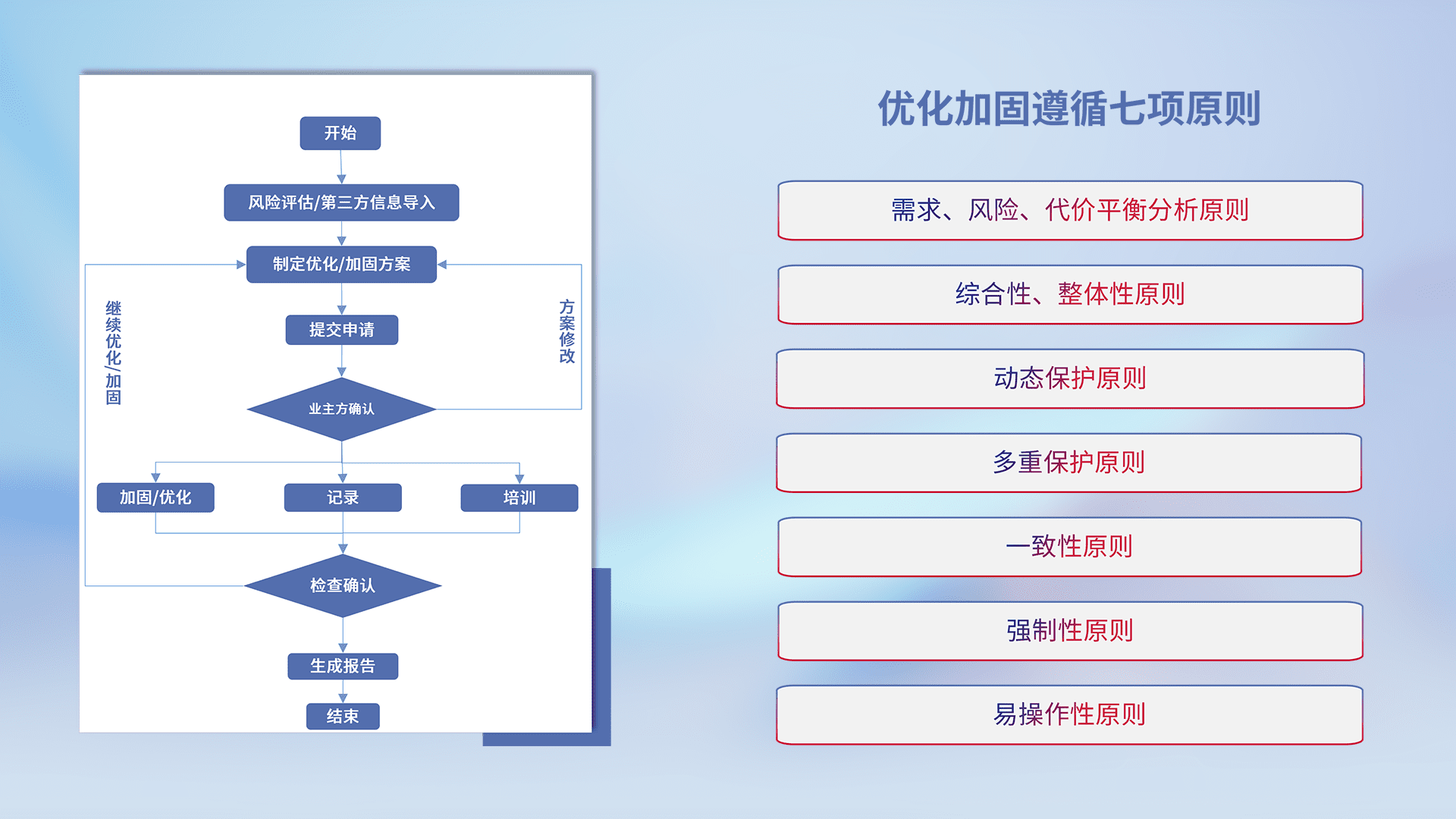 最大程度利用现有资产,,,,对评估发现的问题进行封堵与整改,,,,防止漏洞被利用,,,,提升整体网络安全性,,为客户带来高标准的优化加固服务。。。。