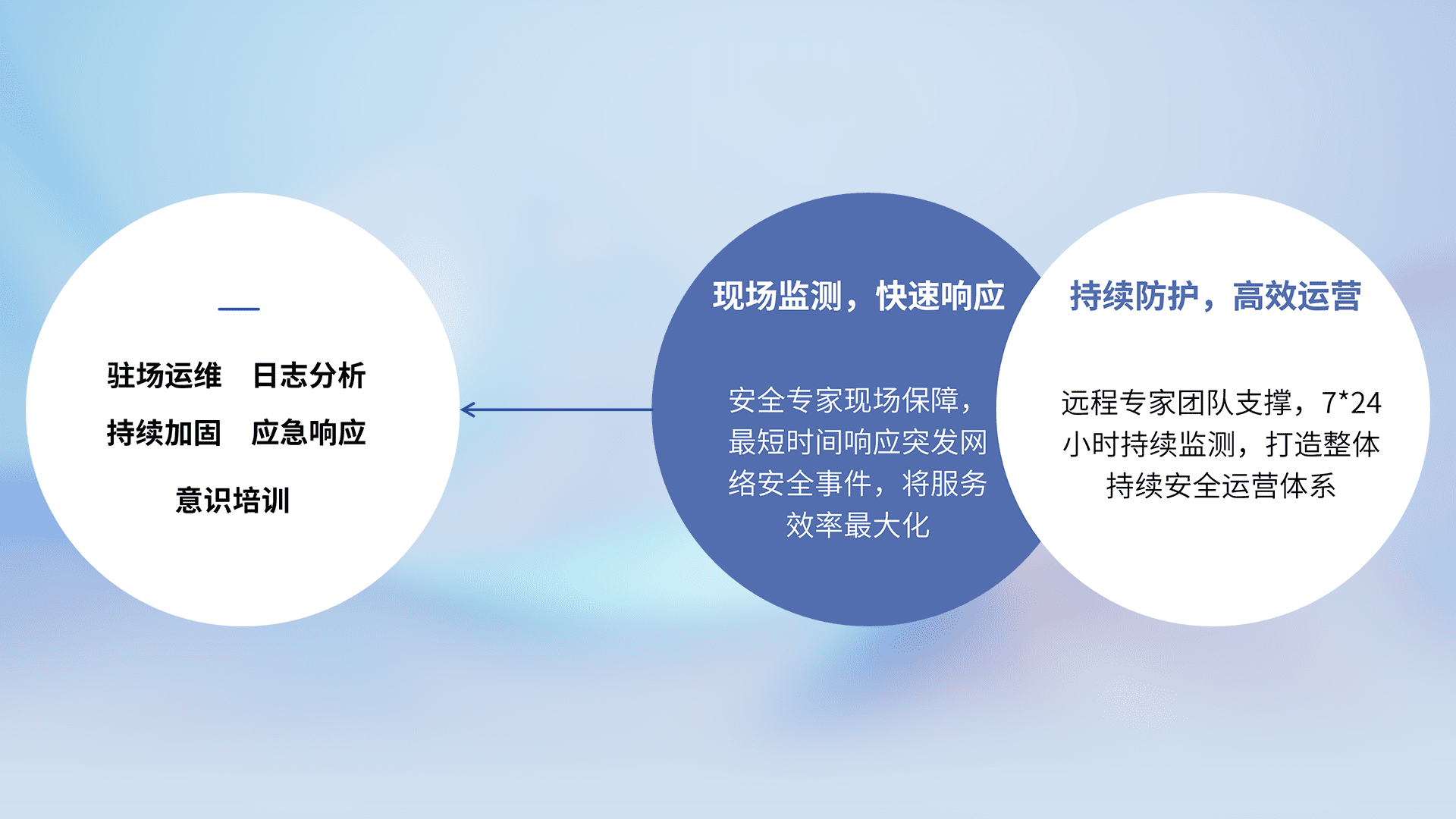 针对客户行业特性,,,提供专属的一站式安全管理服务,,帮助客户全面感知网络空间威胁,,,,通过安全专家的线上、、、线下防护支持,,,实现风险闭环,,,,将安全保障常态化,,,,为客户打造常态化安全运维运营服务。。。
